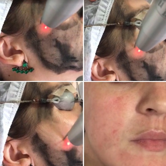 Primeiro é aplicada uma máscara de carvão no rosto e em seguida se faz o laser QSWITCHED. O carvão aumenta a atração da energia do laser pela pele e, com isso, os efeitos são potencializados :