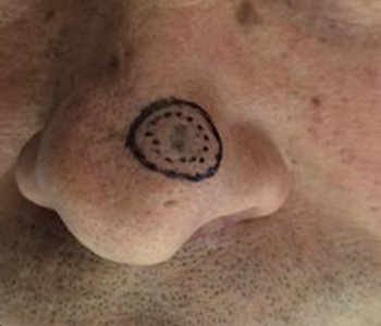Resultado pós cirurgia micrográfica de Mohs com dois estágios no nariz