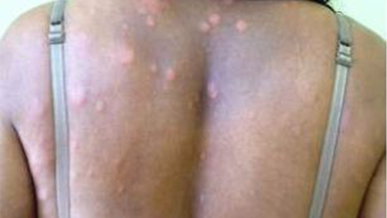 • Caroços vermelhos dolorosos pelo corpo;