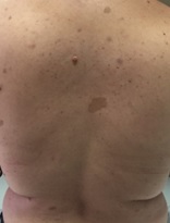 - Aparecimento gradual de manchas castanho-amarronadas de diferentes tamanhos (manchas café com leite). Atenção especial se forem em número maior de seis;