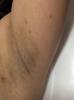 - Sardas nas axilas e virilhas que iniciam na criança;