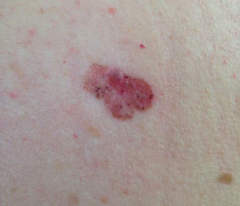 - Geralmente a pele ao redor apresenta sinais de dano solar, como enrugamento, mudanças na pigmentação e perda de elasticidade;