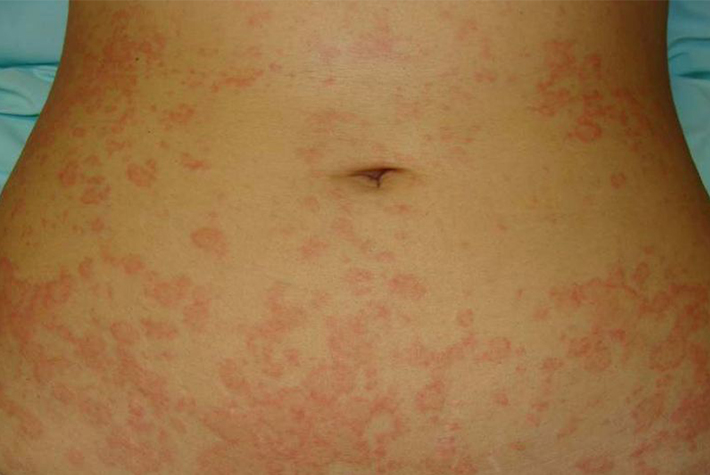 – 5% dos pacientes podem apresentar febre, mal estar, náuseas, dor nas juntas ou dor de cabeça. Esses sintomas podem aparecer antes ou durante o aparecimento das manchas.
