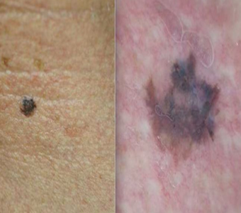 Surgimento de um nódulo rosado na pele, de crescimento rápido, especialmente em pessoas de meia idade em diante, deve chamar a sua atenção. Dentre outras possibilidades bem mais comuns e benignas, devemos afastar a possibilidade de um melanoma amelanótico, forma sem pigmento do melanoma.