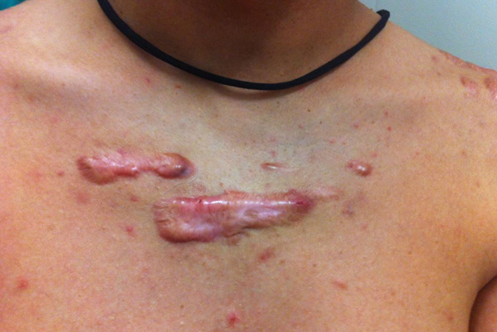O queloide é uma cicatriz anormal, de aspecto avermelhado e endurecido, de difícil tratamento.