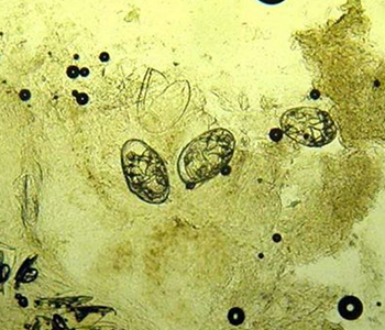 Ovos do ácaro causador da sarna, dentro de escama de raspado da pele